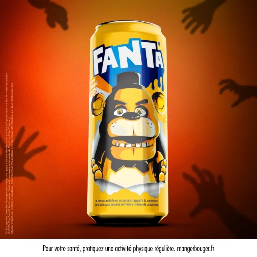 Le Fanta Citron Frappé se pare d'un packaging unique mettant en scène Freddy FazBear, le célèbre ours mécanique et star de l'univers Five Nights at Freddy's.